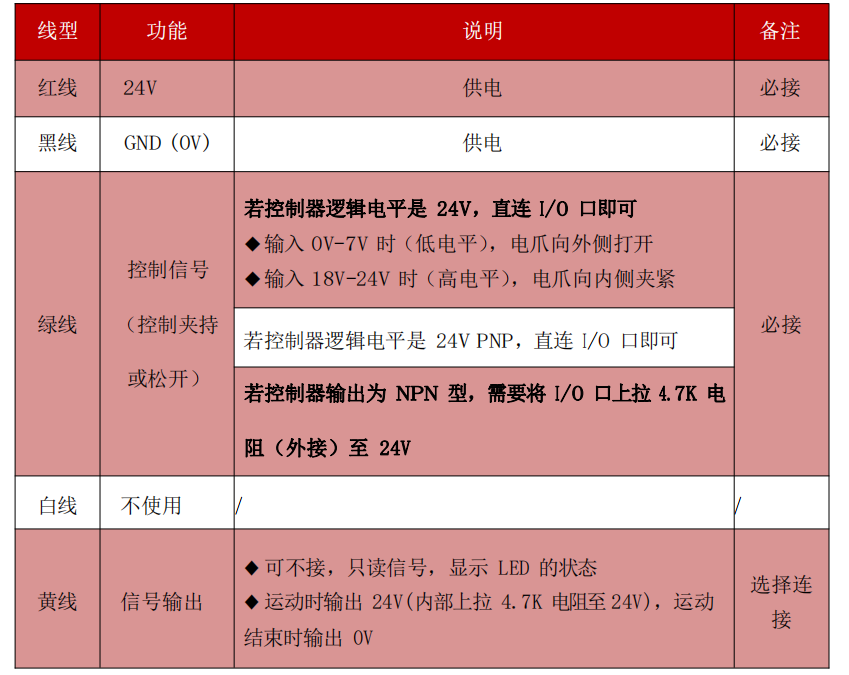 慧靈EFG-8夾爪的線序說明(PNP):