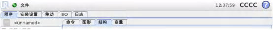 在上圖的示例中,用戶選擇了頂層的程序選項卡以及位于其下一層的結構選項卡。程序選項卡顯示與當前加載程序相關的信息。若選擇移動選項卡,屏幕將切換為移動屏幕,在此屏幕中可以移動機器人手臂。同理,若選擇 I/O 選項卡,可以監控和更改電氣 I/O 的當前狀態。