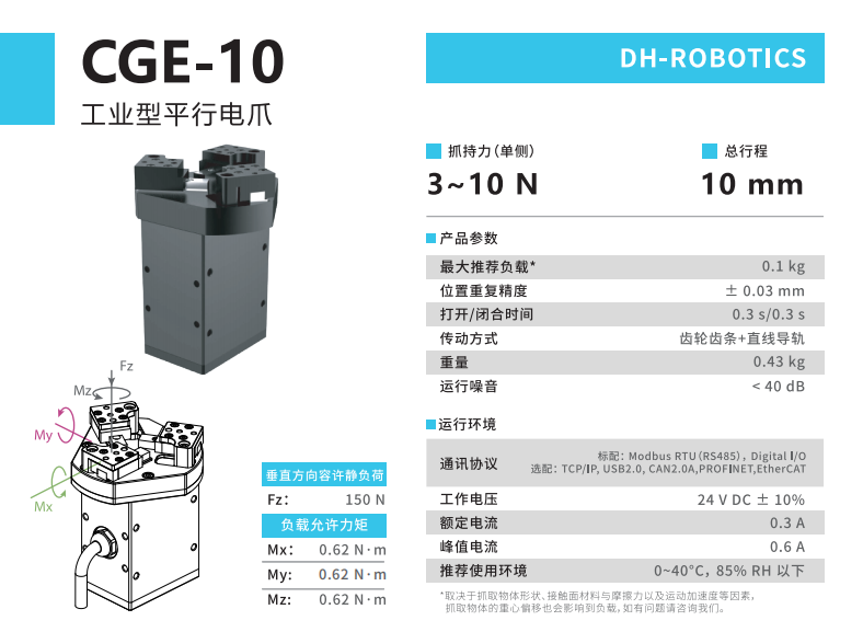 大寰CGE-10三指伺服電爪的產(chǎn)品參數(shù):