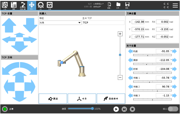 在該屏幕,可通過平移/旋轉UR機器人工具或逐個移動UR機器人關節來直接移動(緩慢移動)UR機器人手臂。