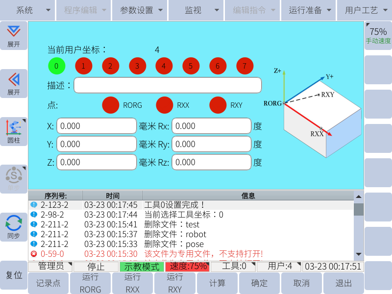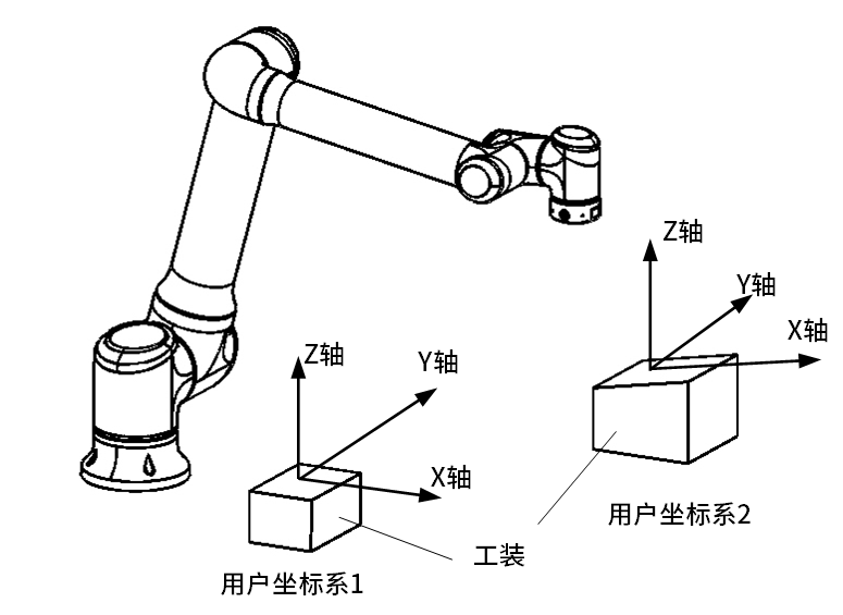 此外,艾利特協作機器人配有專用的可編程操作界面,用戶可通過此界面實時觀察機器人的運行狀態,對機器人進行諸多控制設置,也可脫機進行離線仿真,極大地提升了實際應用的工作效率。建立艾利特機器人用戶坐標系,可以方便示教編程時使用。如圖1所示,有幾個工裝面就需要設置幾個用戶坐標系。