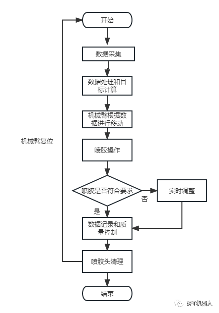 7.清理和結束:完成噴膠操作后,機械臂返回到初始位置,可能需要進行噴膠頭的清理,以準備下一個任務。