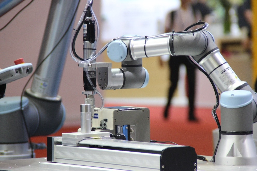 2.實訓機器人工作臺,提供穩定可靠的操作平臺,基座兼容多種協作機器人,像遨博、艾利特、新松、越疆、大族、珞石等國產協作機械臂;